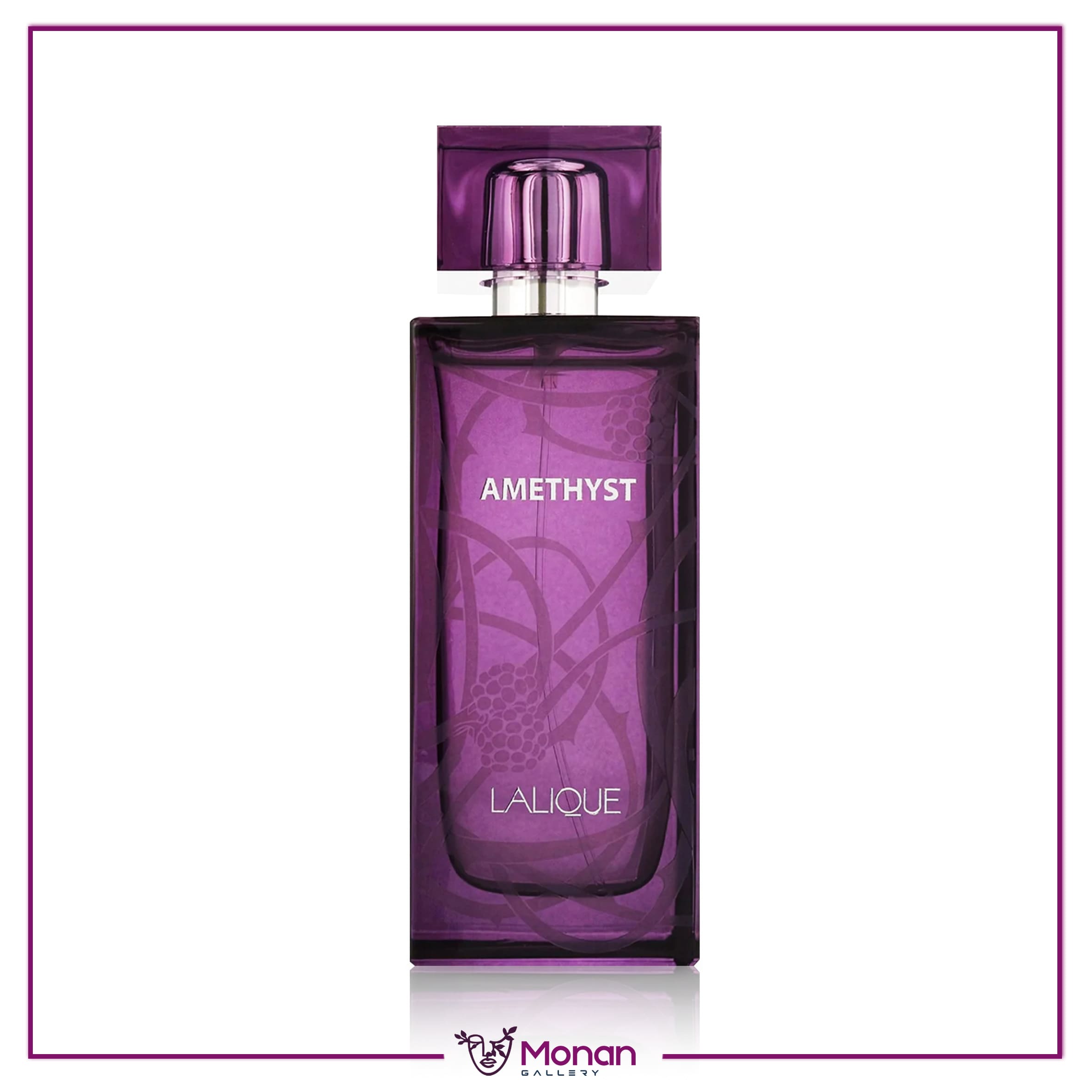 بطری لالیک آمیتیس | LALIQUE – Amethyst طراحی خاص و خیرهکنندهای دارد که الهامگرفته از جواهر زیبا و بنفشرنگ آمیتیس است. شیشه بنفش تیره و مات این عطر با جزئیات گلهای برجسته، حس لوکس بودن و ظرافت را القا میکند. این طراحی زیبا ترکیبی از هنر و اصالت برند لالیک را به نمایش میگذارد.